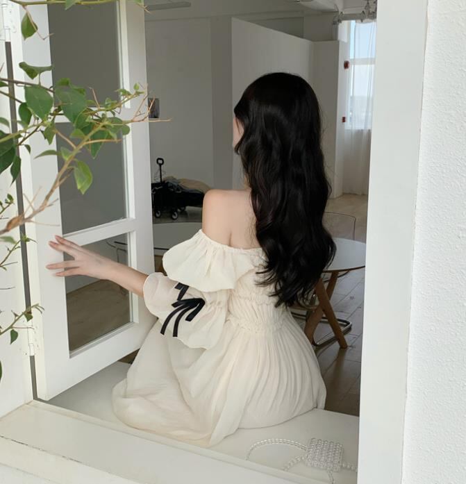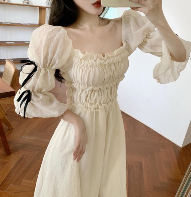 2022春夏新作 女 レディース ハイウエスト 半袖 ロング ワンピース 704136-Icy-1190