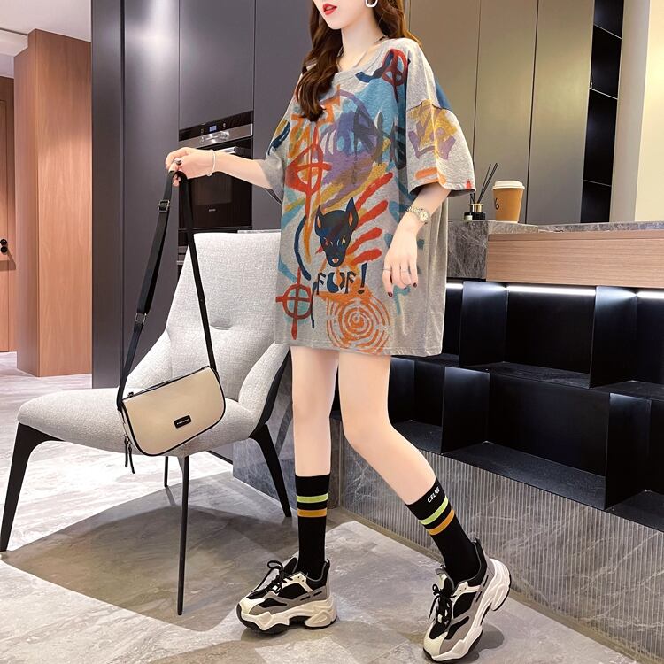 【予約222578】大きいサイズ春夏新作 韓国 レディース ファッション プリント Tシャツ LL-4L 850398-222578