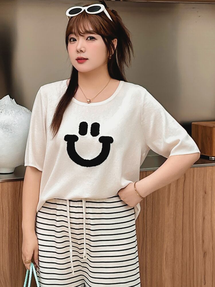 夏 大きいサイズ ママトップス 半袖Tシャツ 緩やか 薄手ニット XL~XXXL 734214-NANSHI04080272