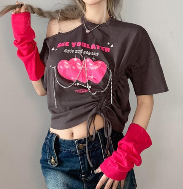 2022春夏新作 レディース 女 半袖 丸首 プリント Tシャツ トップス インナー S-L 704136-KING-2397