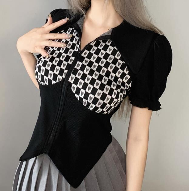 2022春夏新作 レディース 女 半袖 チェック柄 ポロシャツ Tシャツ トップス インナー S-L 704136-KING-2399