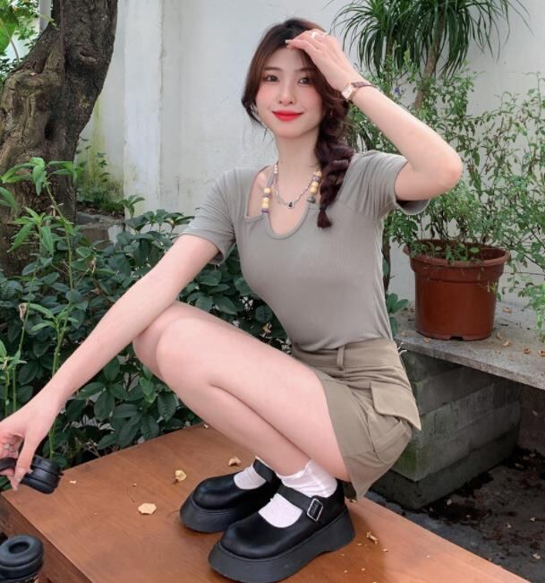 2022春夏新作 レディース 女 半袖 丸首 無地 Tシャツ トップス インナー 2色 704136-KING-2412