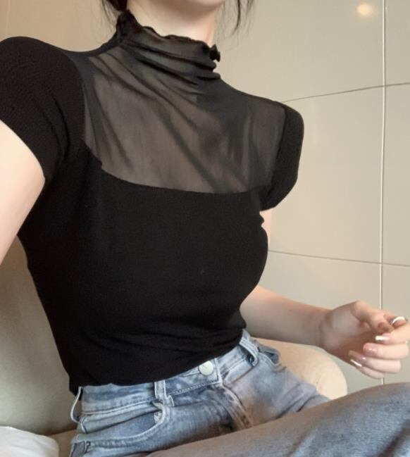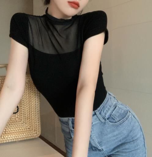 2022春夏新作 レディース 女 半袖 レース 無地 Tシャツ トップス インナー 704136-KING-2417