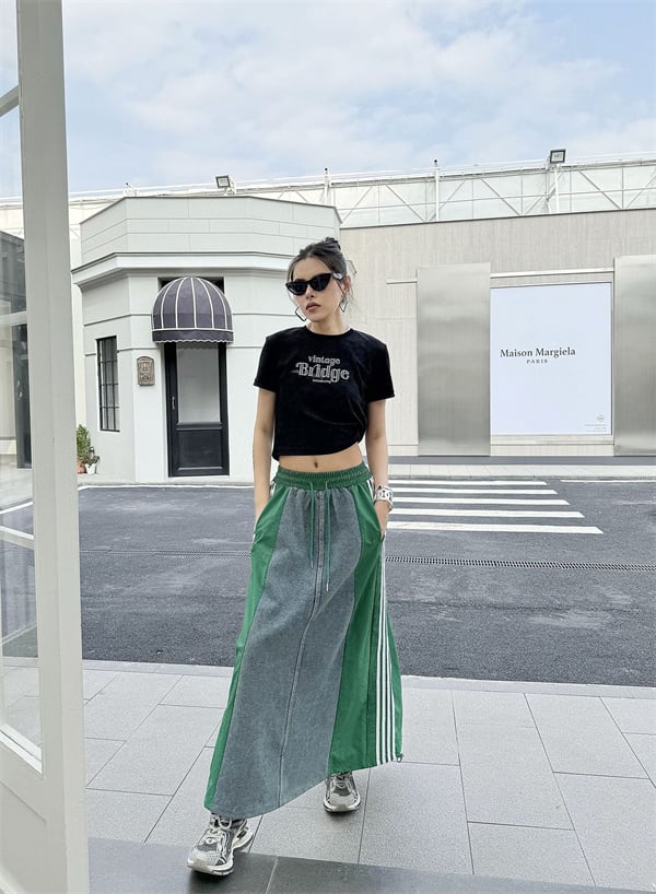 R24217 レディース ロングスカートパーカースカート 切り替え ボトムス ボーダー 2024春夏新作 847632-R24217-0103-yy-q