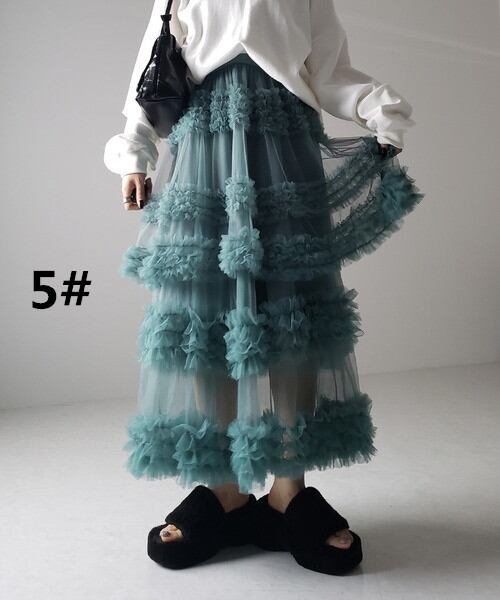 2024年春夏新作 スカート ロング丈スカート ボトムス レディース メッシュ 気質 オシャレ 755316-SY2203Z