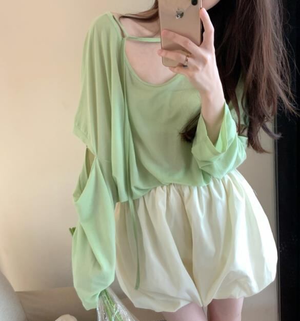 2022春夏新作 レディース 女 長袖 無地 丸首 Tシャツ トップス インナー 4色 704136-KING-2419