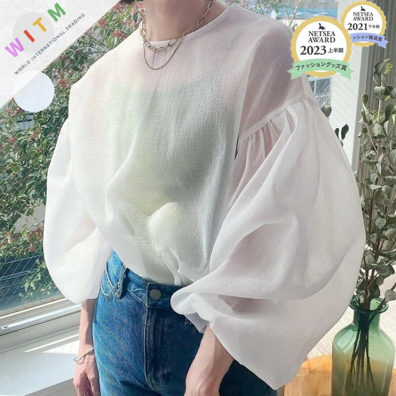 2024春夏新作 トップス 透かしラウンドネック 長袖 フレア袖 シャツ 体型カバー レディース おしゃれ 624783-NZ2645Y