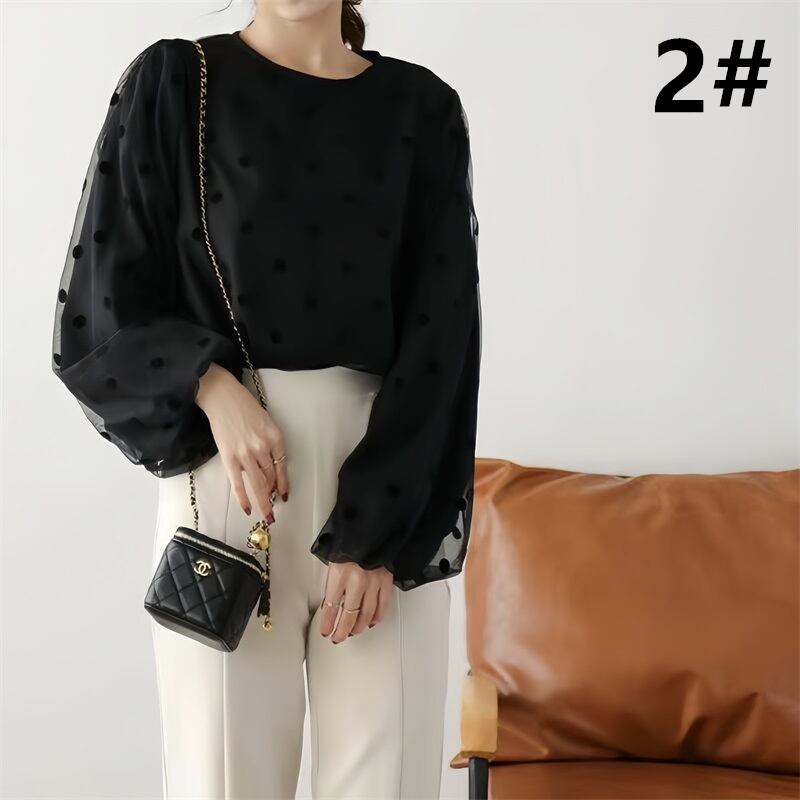 2024春夏新作 トップス 人気シャツ ラウンドネック 長袖 体型カバー レディース おしゃれ 624783-NZ2637Y