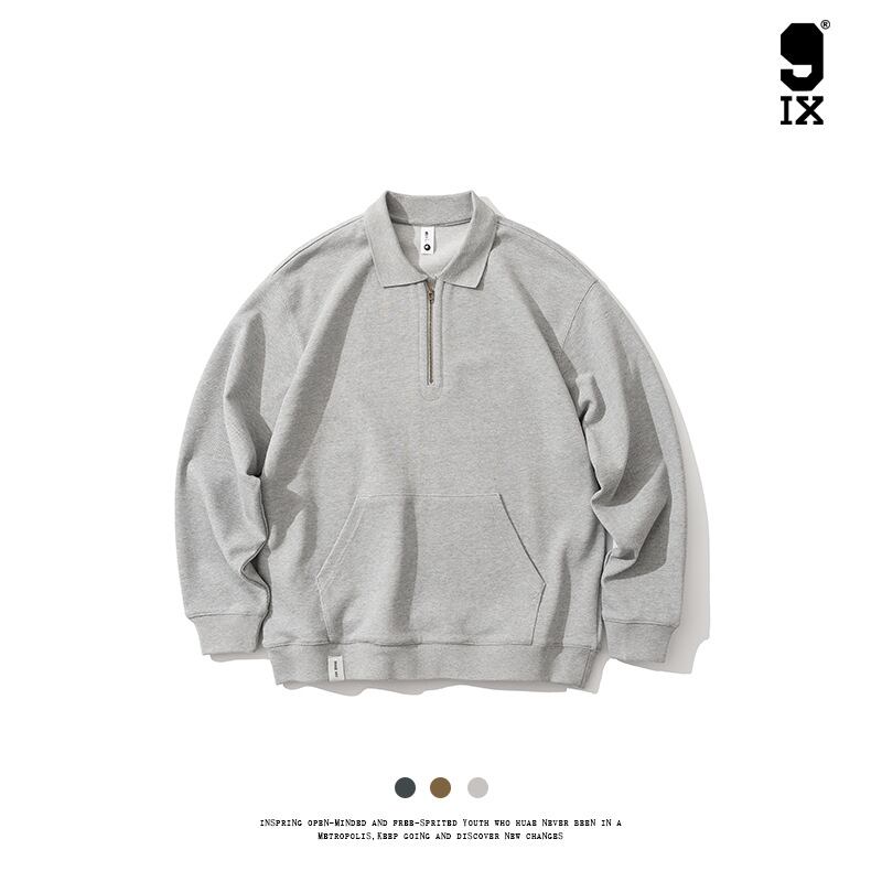 E17454メンズ 男 カジュアル 長袖 ダブルカラー 無地 パーカー トッブス 2024春夏新作 ヴィンテージ 847632-E17454-0105-IX-T