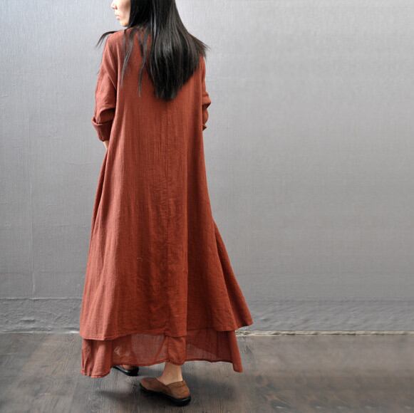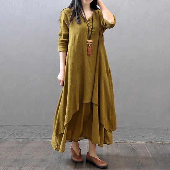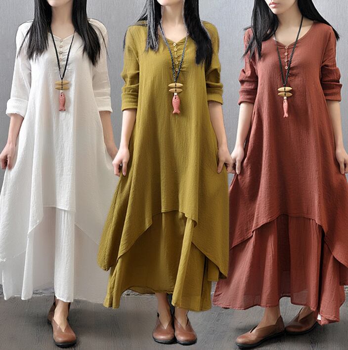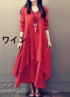 長袖ワンピ ロング丈 体型カバー ロングワンピース 春服 無地 マキシ丈ワンピース ゆったり レディース 464355-C03031T1