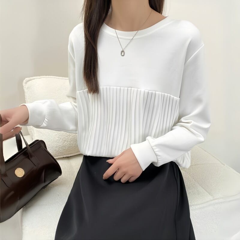 2024春夏新作 トップス ラウンドネック 長袖 ファッション 体型カバー レディース 624783-NZ2627Y