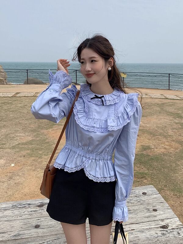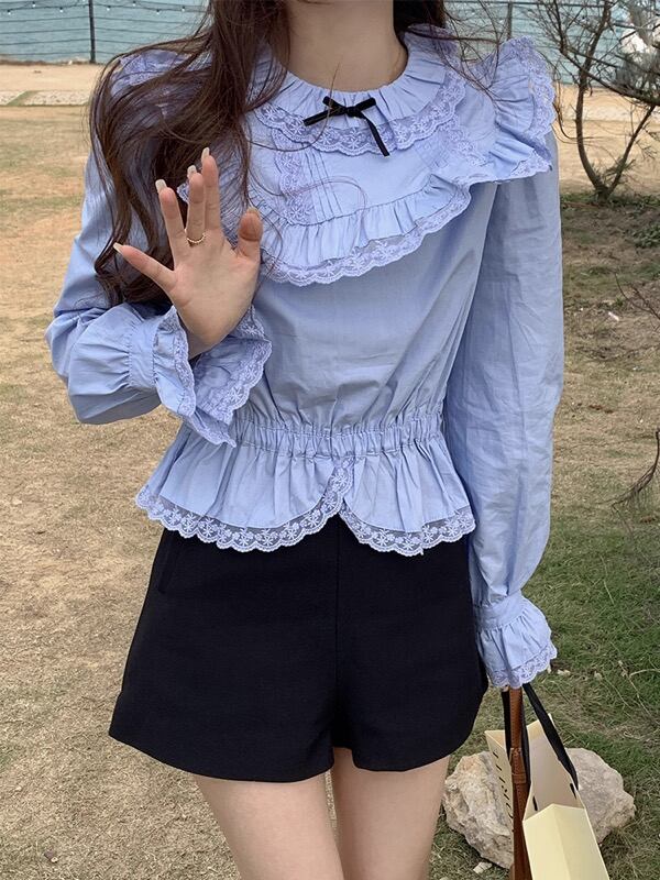 トップス シャツ ブラウス 長袖 フレア袖 ラッパ袖 フリル レース レディース 430798-A-a6110