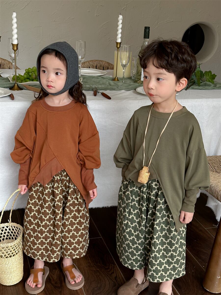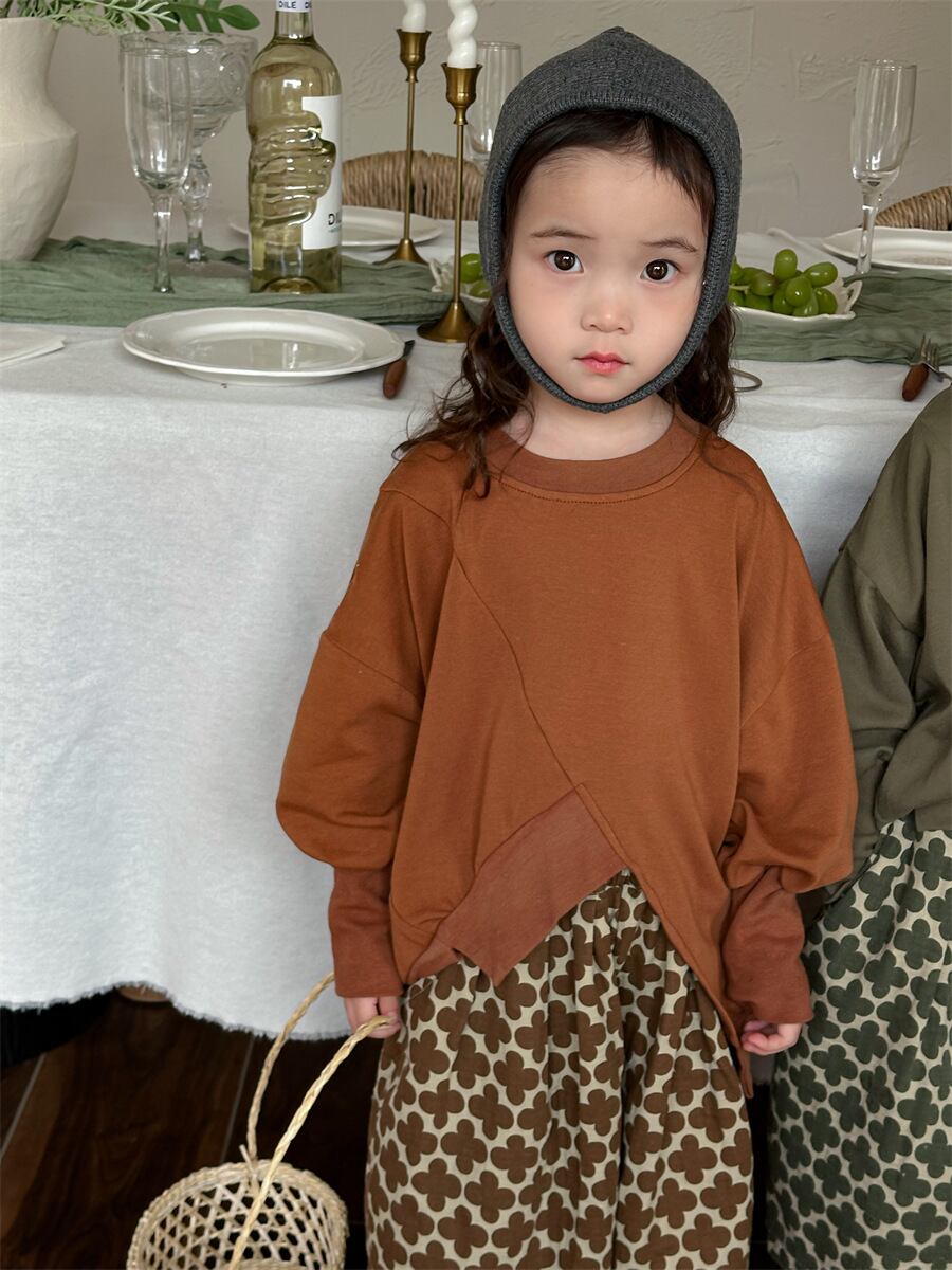 ユニセックス 韓国風子供服 春新作 ナチュラル プルオーバー トレーナー フーディ 不規則上着 80-140 670907-JH24C36