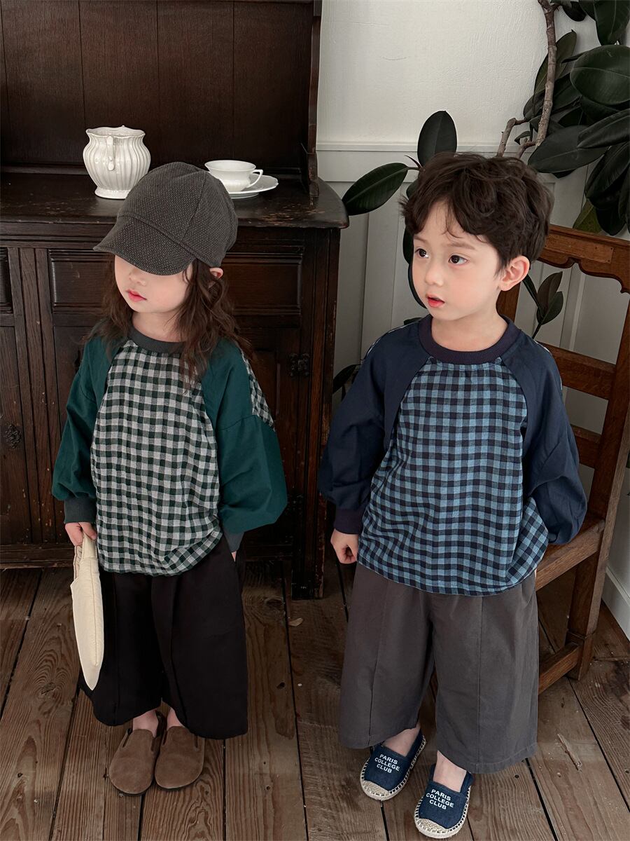 ユニセックス 韓国風子供服 春新作 ナチュラル プルオーバー トレーナー フーディ チェック柄 上着 80-140 670907-JH24C43