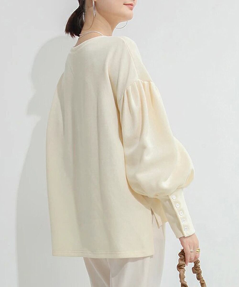 ゆったりトレーナー 袖ボタン ドロップショルダー スリットプルオーバー オフィスカジュアル クルーネックトップス 着回し