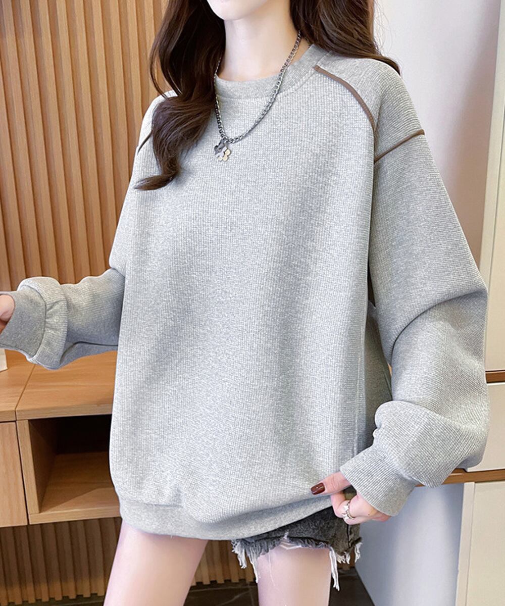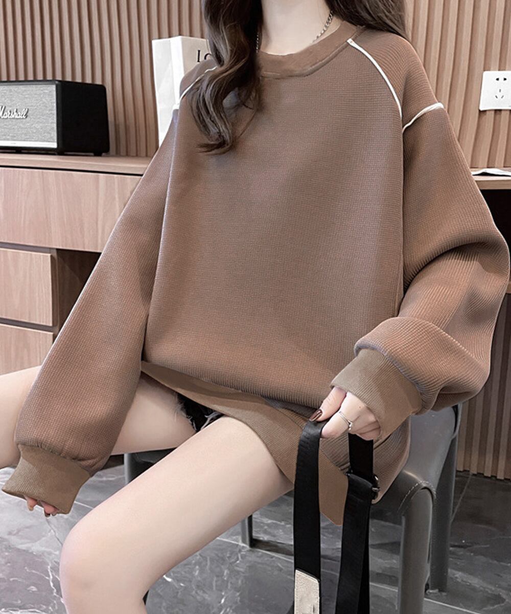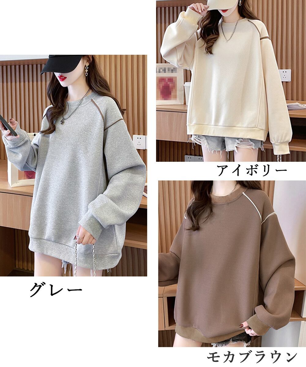 ゆったりトップス ラウンドネック プルオーバー 体型カバー 暖かい 長袖 大人可愛い 韓国ファッション お洒落 通学