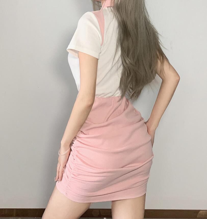 2022春夏新作 女 レディース ハイウエスト 半袖 ミニ ワンピース ドレス タイトスカート 704136-KING-2517