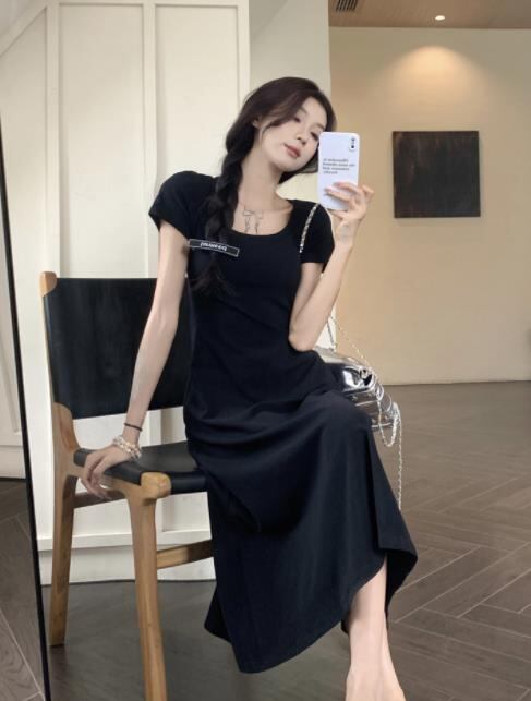 2024春夏新作 女 レディース ハイウエスト 半袖 ロング ワンピース 台型スカート 704136-Win-1383