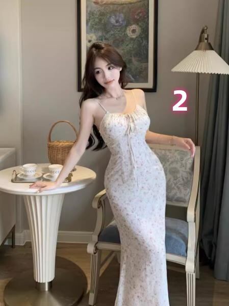 2024春夏新作 女 レディース ハイウエスト 袖なし 吊りスカート ロング ワンピース タイトスカート 704136-Win-1381