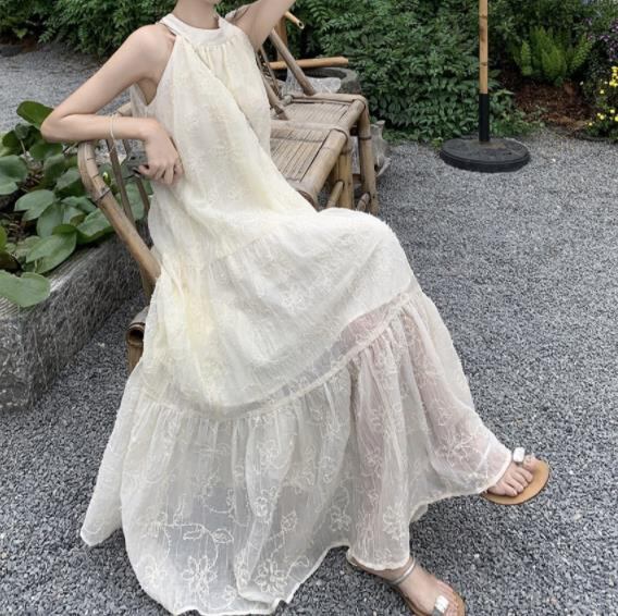 2024春夏新作 女 レディース ハイウエスト 袖なし ロング ワンピース 台型スカート 704136-Win-1380