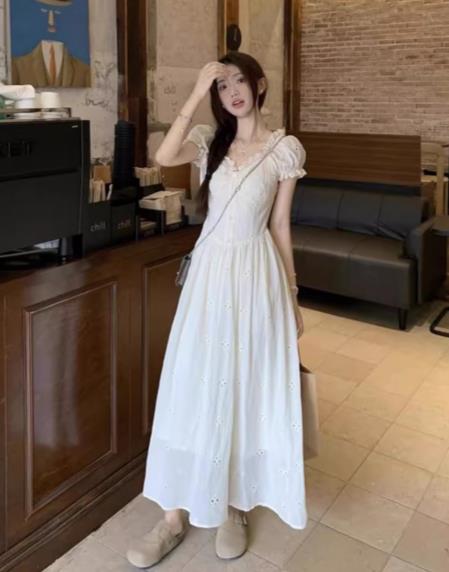 2024春夏新作 女 レディース ハイウエスト 半袖 ロング ワンピース 台型スカート 704136-Win-1378