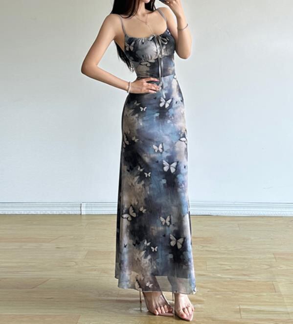 2024春夏新作 女 レディース ハイウエスト 袖なし 吊りスカート ロング ワンピース 台型スカート 704136-Win-1373