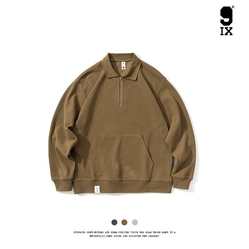 E17454メンズ 男 カジュアル 長袖 ダブルカラー 無地 パーカー トッブス 2024春夏新作 ヴィンテージ 847632-E17454-0105-IX-T