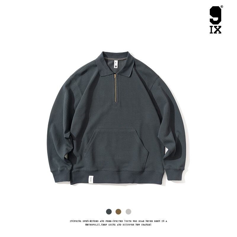 P17454メンズ 男 カジュアル 長袖 ダブルカラー 無地 パーカー トッブス 2024春夏新作 ヴィンテージ 451058-P17454-0105-IX-T